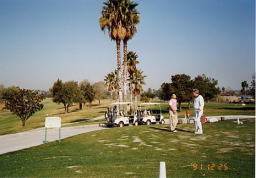 コースはなだらかな起伏のある、ゆったりとしたレイアウトで、セルフ方式により二人用乗用電動カート2台にに分乗してラウンドする。 フエアウエイの随所にある散水栓の蓋に残りのヤーデージが書いてあったり、グリーンのカップの位置が前半か後半かわかるように旗の色を変えてある等、人手を省く工夫がされていて米国らしいと感じる。コース沿いに建っているプール付きの民家が立派で、夕方になると住民が自家用カートでコース内を散策するとか。 |