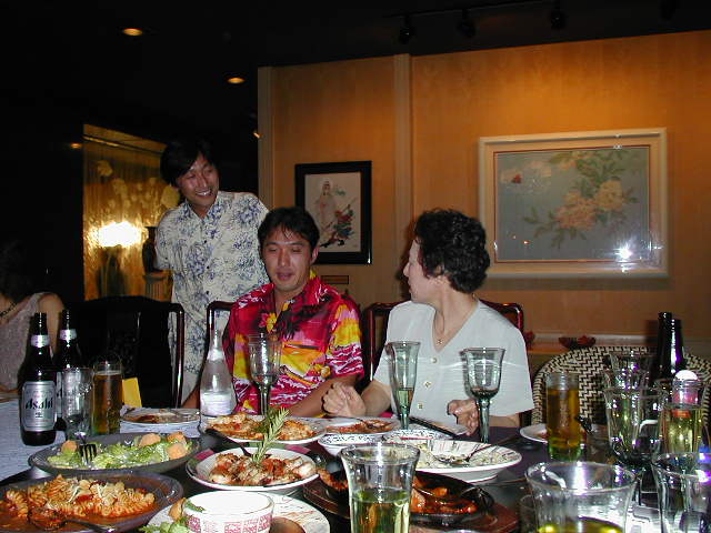 披露宴はホテルの向かいのハイヤットリージェンシーホテルの中華料理店で、当方は和彦一家とともに6名、今井家は母、弟さんの3名、友人7名により開催され、我々は急遽買い込んだアロハシャツとムウムウで出席する。 少人数による、うちうちの友好的で実質的な宴でよかった。