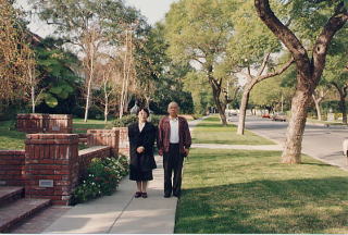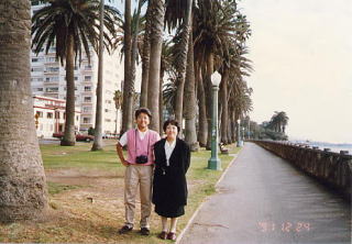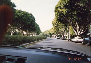 | ビバリーヒルズ ロス空港からロサンゼルスのダウンタウンへ向かう途中、遠回りしながら観光地ををめぐるコースをたどった。 有名人が沢山住んでいるビバリーヒルズの界隈は街路樹が美しくガジュマルの並木と邸宅の庭ががとても印象的だったので某豪邸前でちょっと下車し、庭先で借景撮影をした。 サンタモニカ 太平洋岸に沿ったのんびりした雰囲気の町で、渚沿いのサイクリングやローラスケートが好適とかで、太い椰子の長い並木が印象的であった。 |