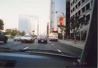 ロサンゼルス市街地 とにかく広い街で、仕事や生活のために車で走る時間が多くなるという。まさに車がないと生活できない社会だと感じた。 ダウンタウンでホームレスに驚き、リトルトーキョウで当面の日用品を購入、夕食は妻が不快のため外食を取りやめ、長男の家に直行。ありあわせのもので夕食して就寝。 |